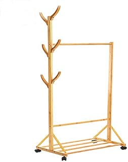 ハンガーラック 木製 頑丈 洋服掛け 洋服ラック 衣類収納 大容量 幅80×奥行38×高さ171cm 全体耐荷重70kg 棚付き 組立簡単 コートハンガー 寝室 玄関 おしゃれ キャスター付き ナチュラル フック6本 (幅80)