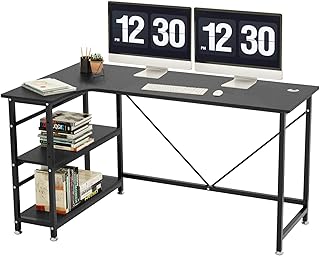 L字デスク パソコンデスク コーナーデスク ゲーミングデスク オフィスデスク ワークデスク アジャスター付き L字型 PCデスク 在宅勤務 テレワーク 省スペース (ブラック)