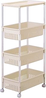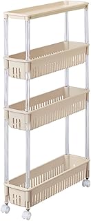 サンコープラスチック すき間収納 ベージュ 約幅15×奥行50×高さ87cm テーブルワゴン 4段 超スリム