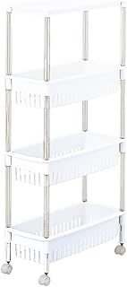 サンコープラスチック すき間収納 オフホワイト 約幅15×奥行50×高さ87cm テーブルワゴン 4段 超スリム