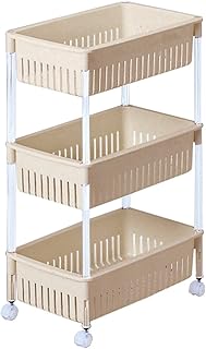 サンコープラスチック すき間収納 ベージュ 約幅22×奥行47×高さ68cm テーブルワゴン 3段 スリム