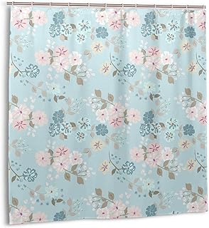 フローラルフラワーシャワーカーテン バスルーム用 水彩画 カラフルな花 ブルーシャワーカーテン ピンク ブルー ホワイト ローズフラワー 緑の葉 素朴な農家用シャワーカーテン 防水