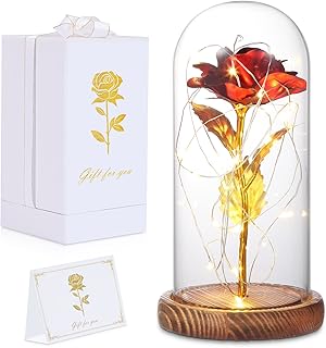 shirylzee 永遠のフラワーローズギフト 美女と野獣 ローズフラワー LEDライトストリング ガラスドームの花に散りばめられた花 母の日 記念日 誕生日 結婚式へのロマンチックなギフト