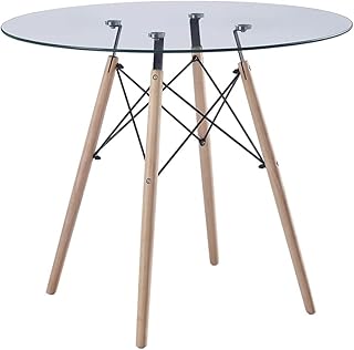 HomeSailing ガラステーブル 直径80cm 丸テーブル 高さ75cm カフェ カフェテーブル 天然木脚部 ダイニングテーブル 組立品