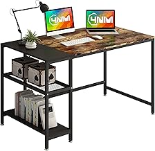 [4NM] パソコンデスク デスク 2層収納棚付 幅120×奥行60×高さ75cm パソコンデスク (メラミン加工) 机 PCデスク 在宅勤務テレワーク (ヴィンテージブラウンとブラック)