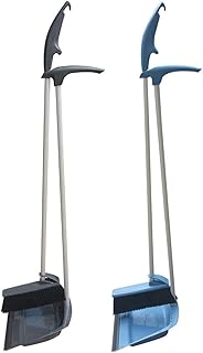 Coralpearl 直立ちりとりアングルほうきコンボ、ロビー立ちフロアちりとりスイープセット、金属製ロングハンドル、ラバーリップ、オフィスホームキッチンルームガレージの屋内クリーニング用36インチ(グレー+ブルー)