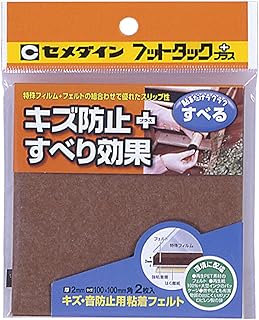 セメダイン キズ・音防止用粘着フェルト・すべり効果 フットタック+ 100mm×100mm ブラウン TP-800