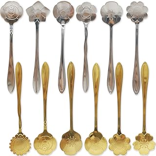 TIHOOD 16個 ステンレススチール フラワー コーヒー スプーン デザートスプーン シュガースプーン アイスクリームスプーン かき混ぜスプーン ティースプーン ミルクシェイク スプーンセット 食器 キッチン カフェ バー (シルバーとゴールド)