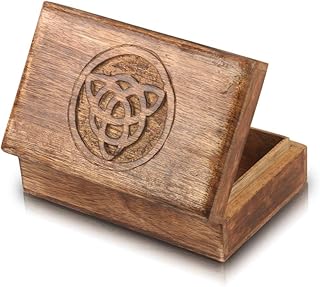 誕生日ギフト ハンドメイド 装飾木製ジュエリーボックス アンク彫刻ジュエリーオーガナイザー 記念品ボックス 宝箱 小物入れ 時計ボックス 収納ロックボックス 4 x 4インチ 新築祝いギフト