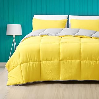 Cobnom Cloud リバーシブル掛け布団 通気性 人工羽毛 マイクロファイバー 掛け布団 掛け布団 掛け布団 ソフト 起毛シェル 3ピース オールシーズンベッド掛け布団セット (キング イエロー/グレー)
