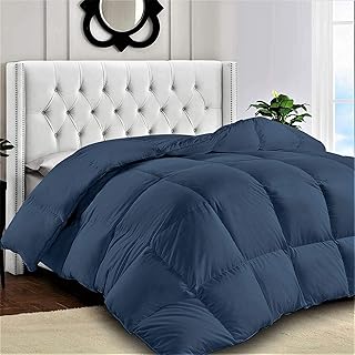 LDC 掛け布団 クイーンサイズ ネイビーブルー ふわふわ 掛け布団 インサート 人工羽毛 ボックスステッチ マイクロファイバー 掛け布団 ホテル品質 寝具 コーナータブ付き