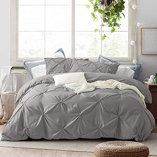ARTALL ピンチプリーツデザイン布団カバー2点セット ファスナー開閉 掛け布団 掛け布団 掛け布団 キルト ティール ツインサイズ Full/Queen(90"x90") グレー ATHH-DC02-GY-FQ