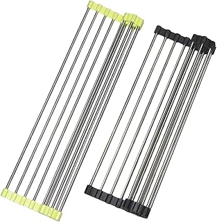 SourceTon 2パック シンク上 多目的 ロールアップ 食器乾燥ラック 2パック 折りたたみ式 耐熱 シンク ステンレススチールラック グリーン ブラック 2サイズ