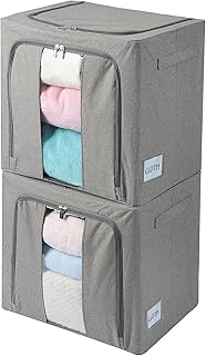 衣類ストレージビン クローゼットオーガナイザー リネン生地ストレージバッグ スチールフレーム ベッドルームストレージボックスコンテナ 毛布 掛け布団 セーター寝具おもちゃ 2パック グレー