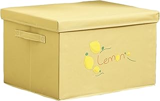 (ADOSSY) 蓋付き 収納ボックス 折りたたみ 押し入れ クローゼット 収納 積み重ね 持ち手付き (レモン)