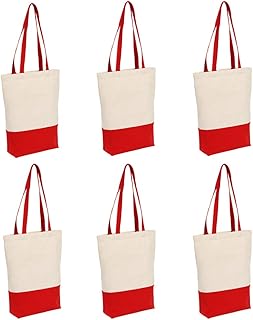 高耐久 12オンス コットンキャンバストートバッグ 底マチ付き 食料品ビーチショッピングバッグ 17x14x4インチ 6パック レッド 6パック 17100インチ