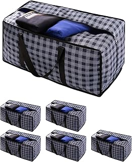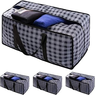 VENO 75L 特大収納バッグ (4個セット) 丈夫なファスナー オーガナイザーバッグ 引っ越しバッグ 防水 収納トート キャンプバッグ 服 寝具 掛け布団 枕 引っ越し用 (ブルーチェック)