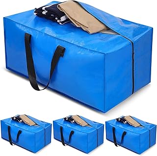Rihim 高耐久 特大収納バッグ 引っ越しバッグ トート ジッパー&キャリーハンドル付き 寮 大学 引越し用品 ボックス ブルー 収納トート 4パック