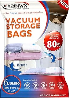 KAQINWX 真空ストレージバッグ 6パック (ジャンボ) スペースセーバーバッグ 再利用可能 ストレージバッグ 80%節約 アップグレードダブルジップシール真空シーラーバッグ 寝具、衣類、旅行用 (ジャンボ6枚 (32インチ x 40インチ)