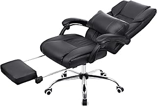 SONGMICS オフィスチェア リクライニングチェア オットマン付き 社長椅子 枕付き 徹底的にリラックス OBG071B01