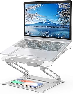 【Amazon限定ブランド】 ノートPCスタンド ノートパソコンスタンド PCスタンド タブレット ipad スタンド 折り畳み式 - Arae 5段階調整可能 人間工学設計 滑り止め 姿勢改善 放熱性 軽量 MacBook Air/Pro/Dell XPS/HP/Surface 10-15.6インチ 適応用 パソコンスタンド (ノートPCスタンド, シルバー)