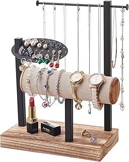 MXARLTR ジュエリーオーガナイザー ツリースタンド メタルと木製 ベーシック ラージストレージネックレス Tバーブレスレット イヤリングホルダー オーガナイザー ジュエリーディスプレイ カーボンブラック