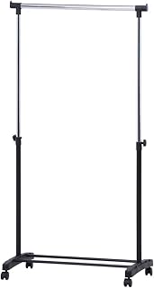 パイプシングルハンガー ハンガーラック パイプハンガー 丈夫 スリム キャスター付 省スペース 洋服掛け シングル 幅75cm 耐荷重15㎏ 幅75×奥行43×高さ89.5~147cm ブラック FGB-6199BK