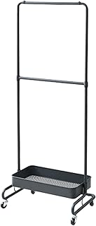Pomeney パイプハンガー 収納ワゴン シングル 幅42 キャスター付き バスケットトローリー 高さ調整 お洒落 洋服 バッグ 帽子 衣替え 収納 バスケット ワゴン スリム 小型 一人暮らし 引越し ハンガーラック ブラック