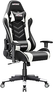 NIONIK ゲーミングチェア オットマン付き 振動パイプ内蔵 高反発ウレタン座面 腰部振動機能 オフィスチェア デスクチェア パソコンチェア リクライニング (白)