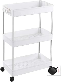 noblewellキッチンワゴン ワゴン 収納ワゴン キャスターワゴン【全身スチール】収納カート キッチンカート 3段ワゴン【耐荷重57kg*幅42x奥行34x高さ87cm】スリムワゴン 三段ワゴン 調味料ワゴン ベビーワゴン バスケットトローリー キッチンラック キャスターラック 収納ラック キャスターラック スリムラック【組立簡単*隙間収納】ホワイト
