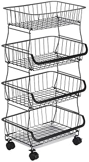 JANCANT メタル製 4段 キッチンラック オフィス収納カート スリムワゴン 収納ラック バスケット 大容量 収納ワゴン キャスター付 ローク付き 多機能収納カート 黒