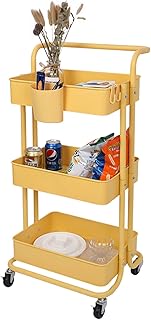 金属製 キッチンワゴン 収納ワゴン ワゴンキャスター 3段ワゴン 耐荷重60kg 幅42x奥行34x高さ87cm ワゴンカート 台所収納カート 組立簡単 隙間収納 (イェロー)