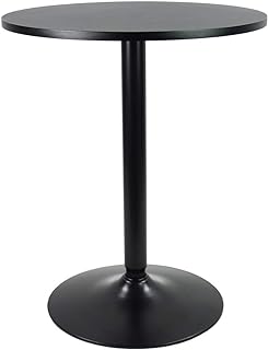 KKTONER バー丸テーブル カウンターテーブル カフェテーブル 2人用 ダイニングテーブル 机 幅60cm ブラック (黒)